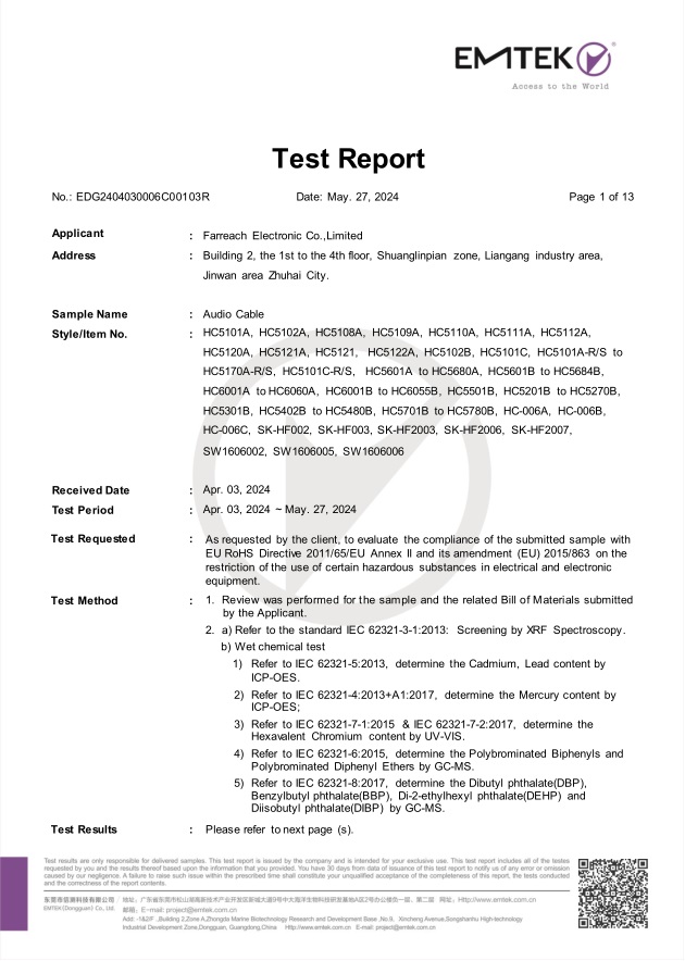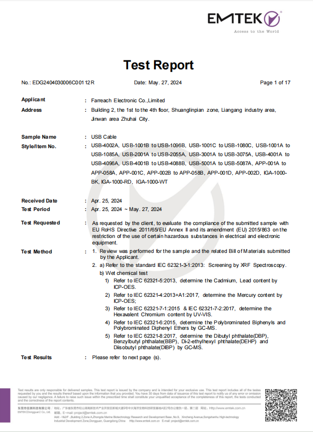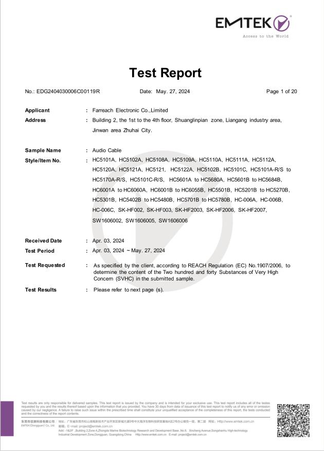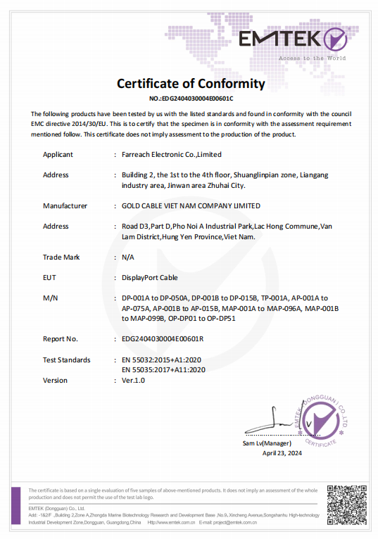 شركة Farreach الإلكترونية المحدودة تأسست في عام 2006 ، وتقع في تشوهاي ، قوانغدونغ. باعتبارها واحدة من الشركات المصنعة للكابلات ، تركز Farreach بشكل رئيسي على كابلات HDMI/DVI ، كابلات DisplayPort ، محاور من النوع C ، كابلات الألياف البصرية AOC ، كابلات USB من النوع C وغيرها من كابلات الصوت والفيديو.